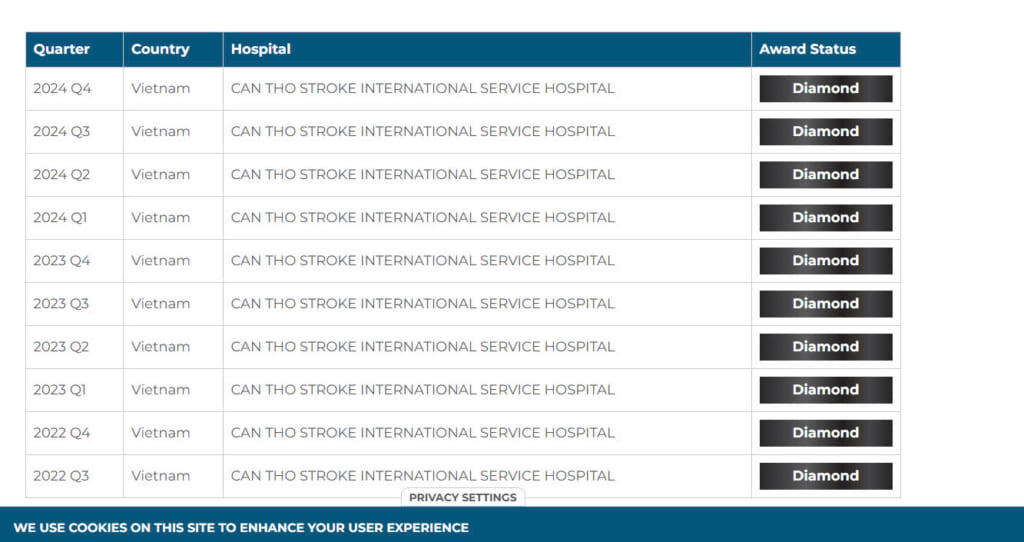 Bệnh viện S.I.S Cần Thơ đã đạt được con số 10 lần liên tiếp giành giải thưởng này, đưa tỷ lệ bệnh nhân đột quỵ tiếp cận điều trị trong “giờ vàng” từ dưới 5% (trước năm 2020) lên đến 24% vào năm 2024, qua đó giảm thiểu tỷ lệ tử vong và tàn phế cho người bệnh.