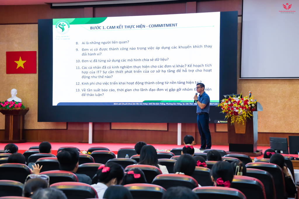 Chương trình thu hút sự quan tâm của đông đảo cán bộ y tế bởi nội dung thiết thực, bám sát hoạt động cải tiến tại các khoa phòng. Trong chương trình, TS.BS. Lý Quốc Trung – Phó Giám đốc Bệnh viện Sản Nhi Sóc Trăng, Thành viên Ban Cố vấn Hội đồng Quản lý chất lượng bệnh viện ngành Y tế TP. Cần Thơ đã trình bày hai chuyên đề: “Nâng cao kỹ năng xây dựng chỉ số đo lường chất lượng bệnh viện” và “Hướng dẫn lập Đề án cải tiến chất lượng khoa, phòng”. Những chia sẻ của ông giúp học viên hiểu rõ hơn cách xây dựng bộ chỉ số phù hợp với thực tế, gắn với mục tiêu nâng cao chất lượng chăm sóc người bệnh.