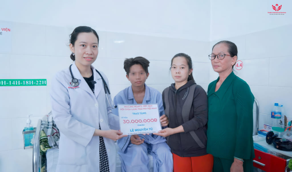 Em L.N.T là một trong nhiều trường hợp là trẻ em có bất thường về não được điều trị tại Bệnh viện ĐKQT S.I.S Cần Thơ. Tại đây, Quỹ từ thiện bệnh nhân nghèo đột quỵ KV ĐBSCL phối hợp với Hội Chữ lành trái tim hỗ trợ các trường hợp trẻ em không may mắc các bệnh lý hiểm nghèo về tim mạch và não. Tùy theo mức độ khó khăn của từng ca bệnh mà chi phí điều trị có thể lên đến 100%. Đối với em L.N.T, Quỹ và Hội đã hỗ trợ cho gia đình 30 triệu đồng để giúp trang trải chi phí điều trị.