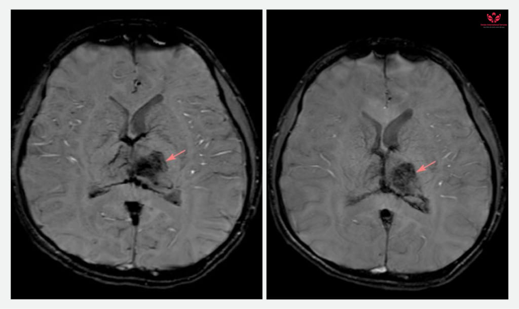 Kết quả ghi nhận tình trạng xuất huyết não, phù não vùng đồi thị. Các bác sĩ của 2 bệnh viện cùng hội chẩn, đưa ra chẩn đoán xác định là đột quỵ xuất huyết não do tắc tĩnh mạch Galen. Sau khi có kết quả hội chẩn, gia đình em được các bác sĩ Bệnh viện Nhi đồng TP. Cần Thơ hướng dẫn nhập viện can thiệp điều trị cấp cứu tại Bệnh viện ĐKQT S.I.S Cần Thơ.