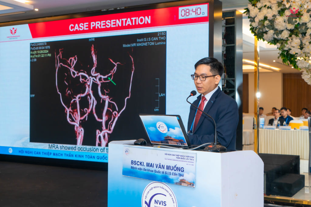 Báo cáo về Vai trò MRI trong nhồi máu não cấp và chiến lược can thiệp hẹp mạch nội sọ, BS.CKI Mai Văn Muống đã thuyết phục hội đồng chuyên môn bằng việc ứng dụng hình ảnh học tiên tiến để cá thể hóa điều trị. Theo BS. Muống, thay vì áp dụng một công thức chung, việc sử dụng MRI giúp bác sĩ đánh giá chính xác từng tổn thương, từ đó quyết định nong bóng, đặt stent hay hút huyết khối một cách tối ưu.