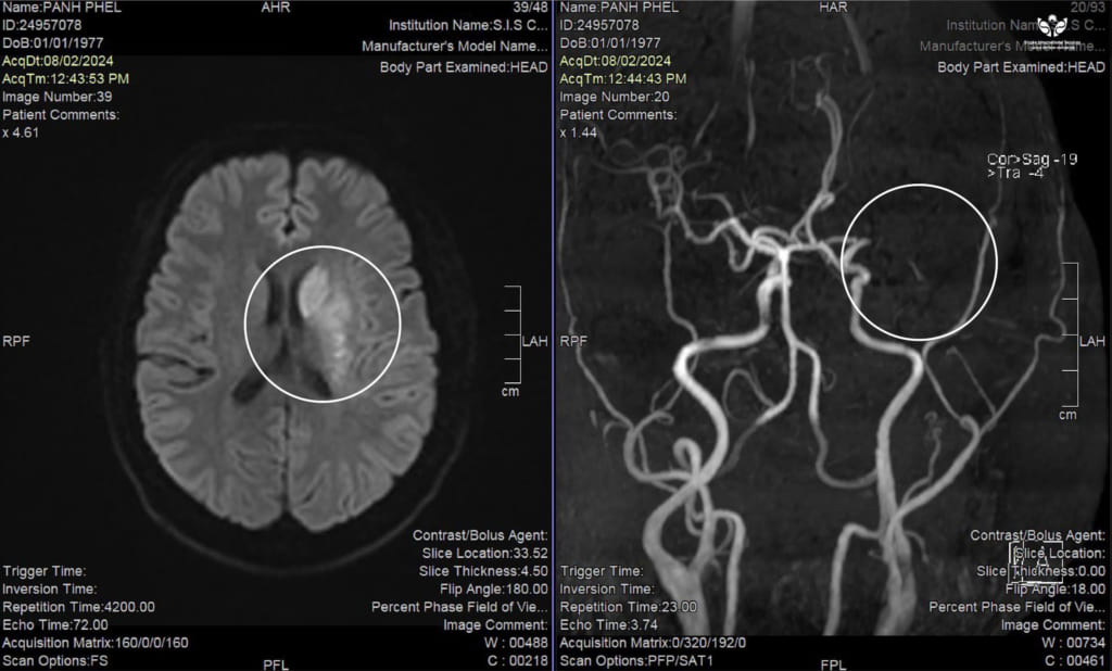 Được biết, bệnh nhân P.P nhập viện trong tình trạng liệt tay chân phải, không nói được, tiếp xúc chậm. Sau khi có kết quả chụp MRI não, bác sĩ chẩn đoán bệnh nhân bị đột quỵ nhồi máu não. Bác sĩ tư vấn với người nhà cần phải can thiệp nhanh chóng cho bệnh nhân.