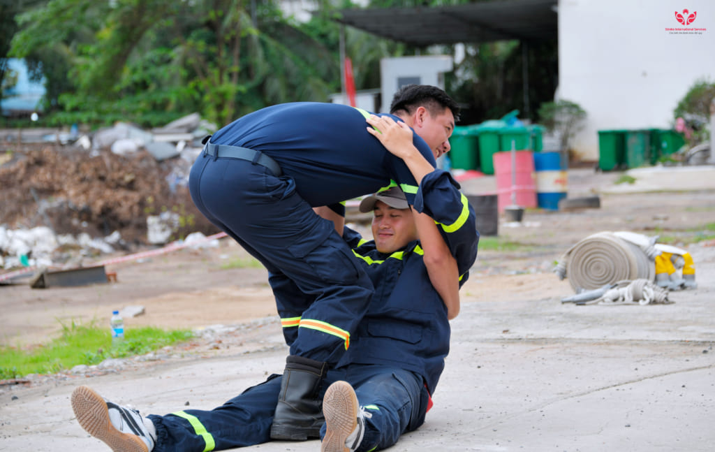 Trong khuôn khổ buổi tập huấn, còn có phần thực hành với nhiều tình huống giả định trong công tác PCCC & CNCH.
