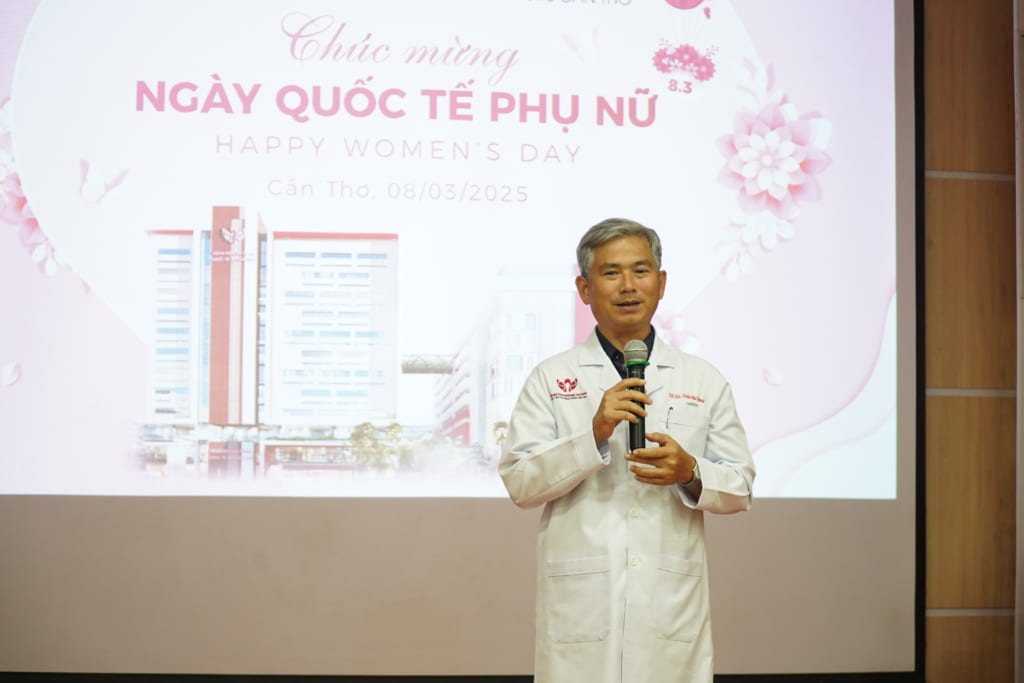 TS.BS Trần Chí Cường – Giám đốc Bệnh viện đã gửi những lời chúc mừng tốt đẹp nhất đến toàn thể nhân viên nữ, đồng thời bày tỏ sự tri ân sâu sắc đối với sự cống hiến của các chị em trong công việc.