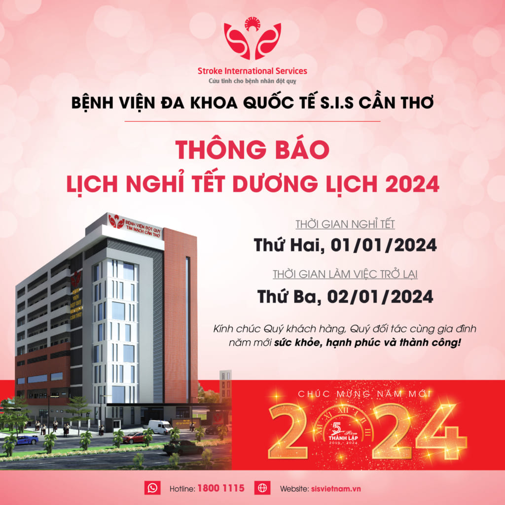 Trân trọng thông báo đến Qúy khách hàng, đối tác lịch nghỉ Tết Dương lịch của Bệnh viện Đa khoa Quốc tế S.I.S Cần Thơ & Phòng khám Đa khoa Quốc tế S.I.S Đà Nẵng như sau: