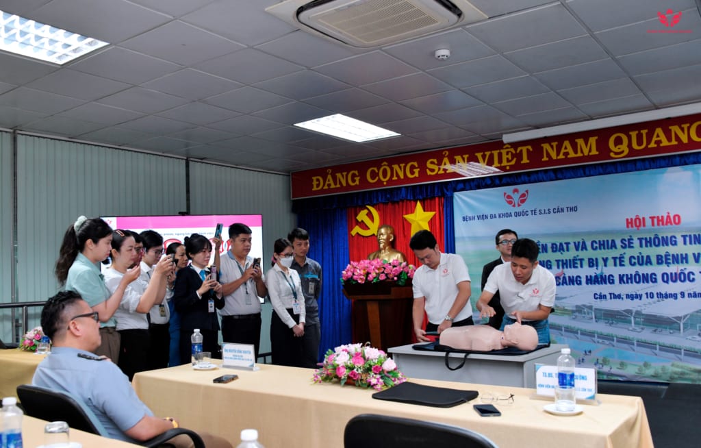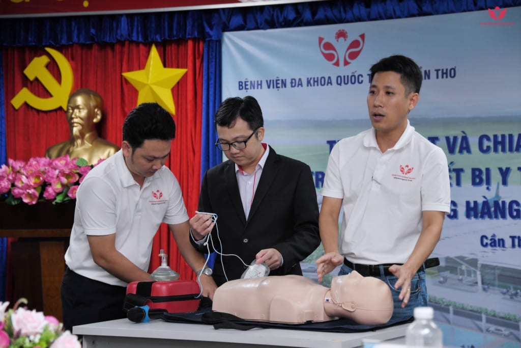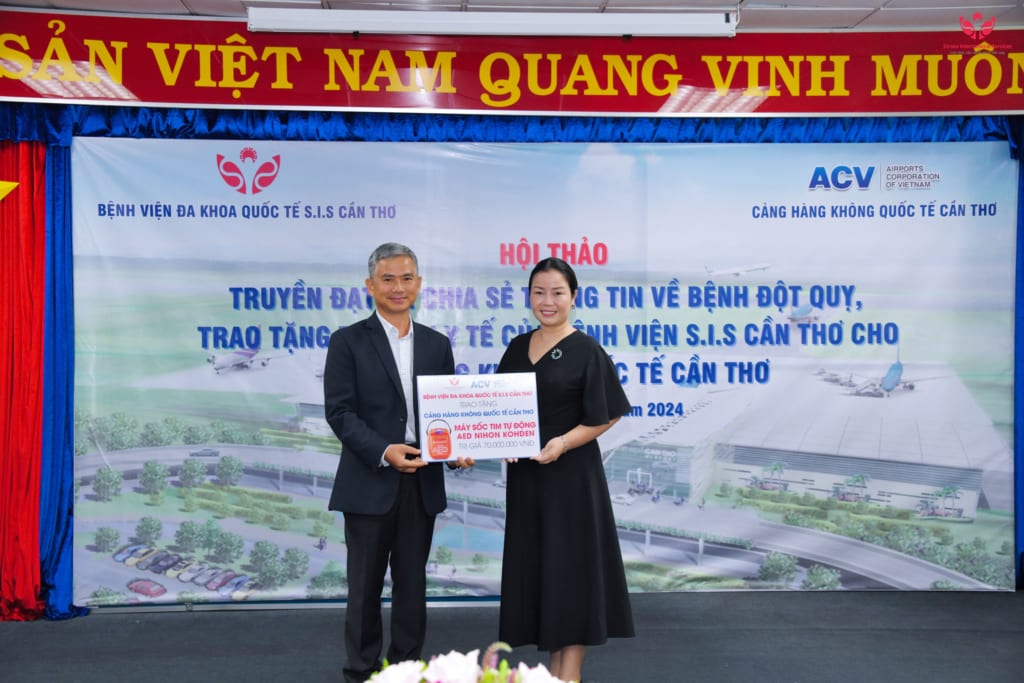 Dịp này, Bệnh viện Đa khoa Quốc tế S.I.S Cần Thơ đã trao tặng Cảng Hàng không Quốc tế Cần Thơ máy sốc tim tự động AED trị giá 70 triệu đồng.