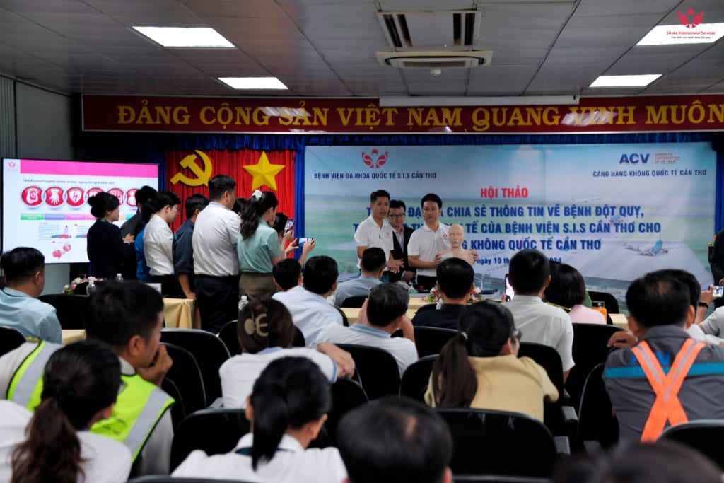 Sáng 10/9, Bệnh viện Đa khoa Quốc tế S.I.S Cần Thơ phối hợp cùng Cảng Hàng không Quốc tế Cần Thơ tổ chức buổi chia sẻ về bệnh đột quỵ dành cho cán bộ nhân viên của Cảng. Chương trình thu hút sự tham gia của hơn 100 đại biểu, bao gồm lãnh đạo và cán bộ nhân viên của Cảng Hàng không Quốc tế Cần Thơ.