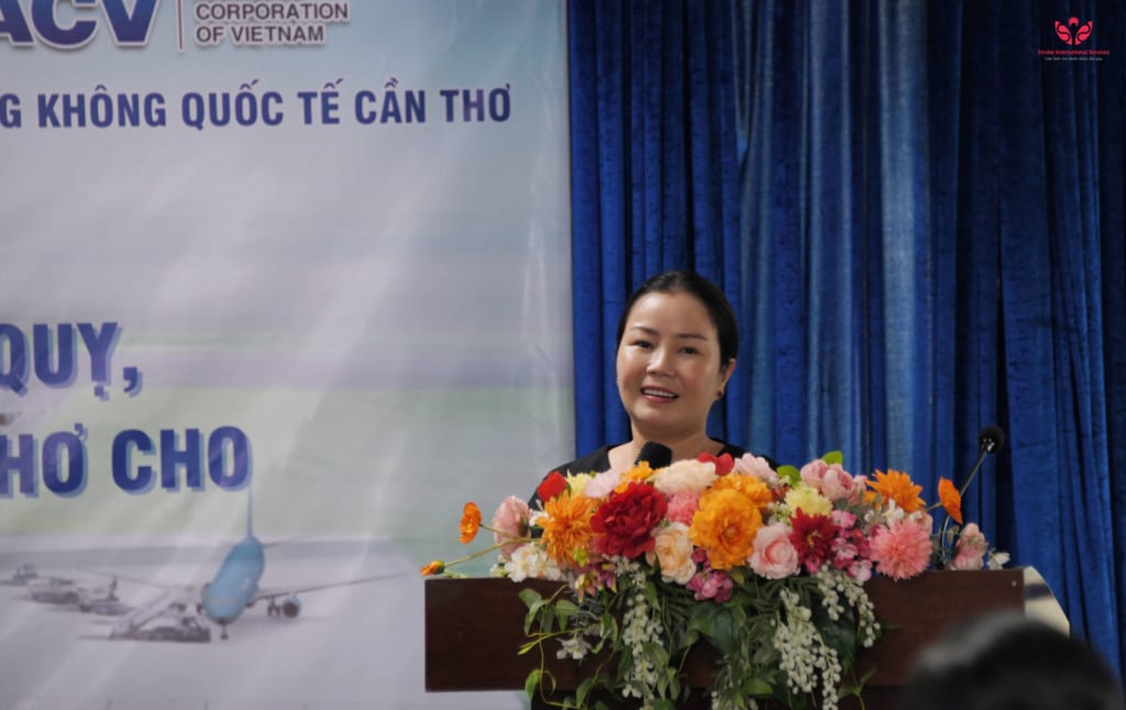 Bà Phạm Thùy Trang, Giám đốc Cảng Hàng không Quốc tế Cần Thơ phát biểu