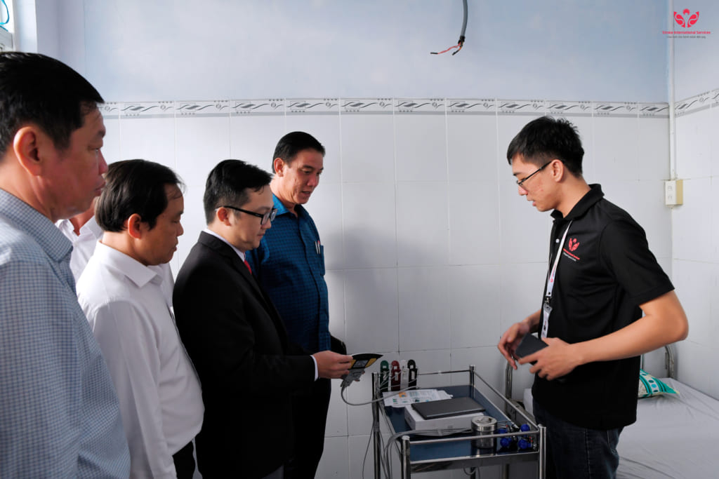 Ngoài ra, chuyên gia của S.I.S Cần Thơ cũng đã trực tiếp hướng dẫn cho cán bộ y tế tại Trung tâm Y tế TX. Tịnh Biên cách sử dụng và kết nối máy Đo điện tim từ xa với các thiết bị liên quan.