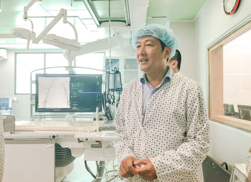 Trong buổi sáng cùng ngày, TS.BS Trần Chí Cường cũng tiếp đón bác sĩ Huỳnh Ngọc Long – Trưởng khoa Tim mạch – Bệnh viện FV. Bác sĩ Long là một trong những người đầu tiên ở miền Nam đi học về thông tim. Sau 22 năm, đôi tay của ông đã mang lại phép màu cho hơn 10.000 bệnh nhân tim mạch với tỷ lệ tử vong dưới 0,1%. Trong số đó có không ít ca, bệnh nhân đã ngưng tim, ngưng thở.