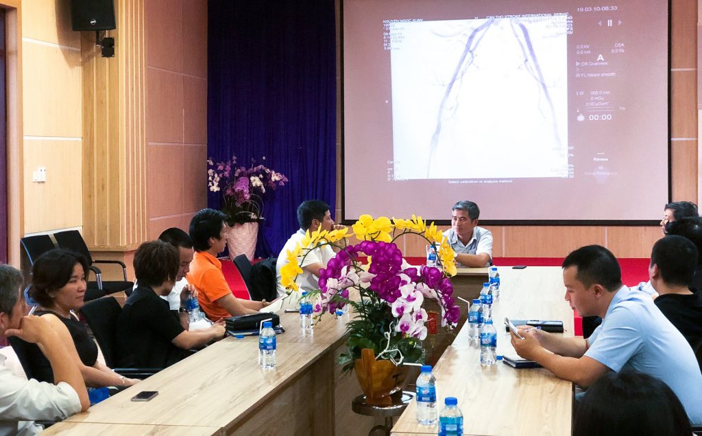Đây là chuyến đi nhằm mục đích tham khảo quy mô bệnh viện và nhận sự tham vấn từ các bác sĩ, đặc biệt là của giám đốc bệnh viện – TS.BS Trần Chí Cường – người đã đặt nền móng, hoàn thiện cho cơ sở cấp cứu, can thiệp đột quỵ đầu tiên của ĐBSCL.